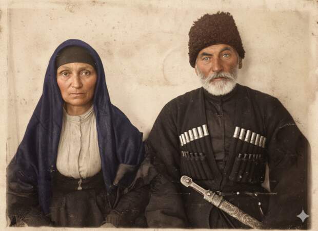 Семейная пара черкесогаев. Армавир, Краснодарский край. Середина XX века.