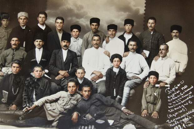 Участники первых курсов по составлению и изучению письменности шапсугов (черкесов) Черноморского побережья. Туапсе, 1921 г.