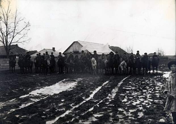 Черкесская свадьба. Группа всадников, приехавших за невестой, чтобы отвезти ее в дом жениха. Западный Кавказ, экспедиция Е.М. Шиллинга в Адыгею и Приморскую Шапсугию, 1930 год.