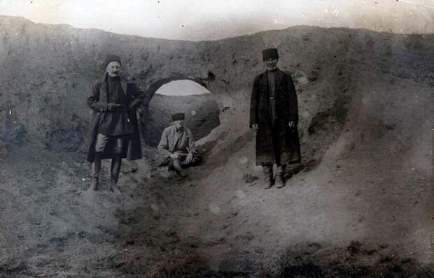 Земляная арка, через которую прогоняют скот, чтобы сохранить от эпидемии. Экспедиция Евгения Шиллинга (1892-1953) в Адыгею и Приморскую Шапсугию, 1930 г.