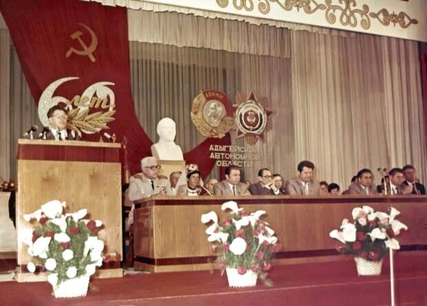 Фотографии, представленные выше, запечатлели празднование 60-летия со дня образования Адыгейской автономной области.