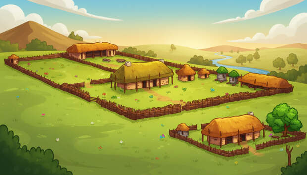 Временные дома: Жилища были легкими — каркасными, из плетня и глины, с крышами из камыша или соломы. Они не имели фундамента, что позволяло при необходимости разобрать их и перенести на новое место, следуя за плодородием почв или спасаясь от опасности.